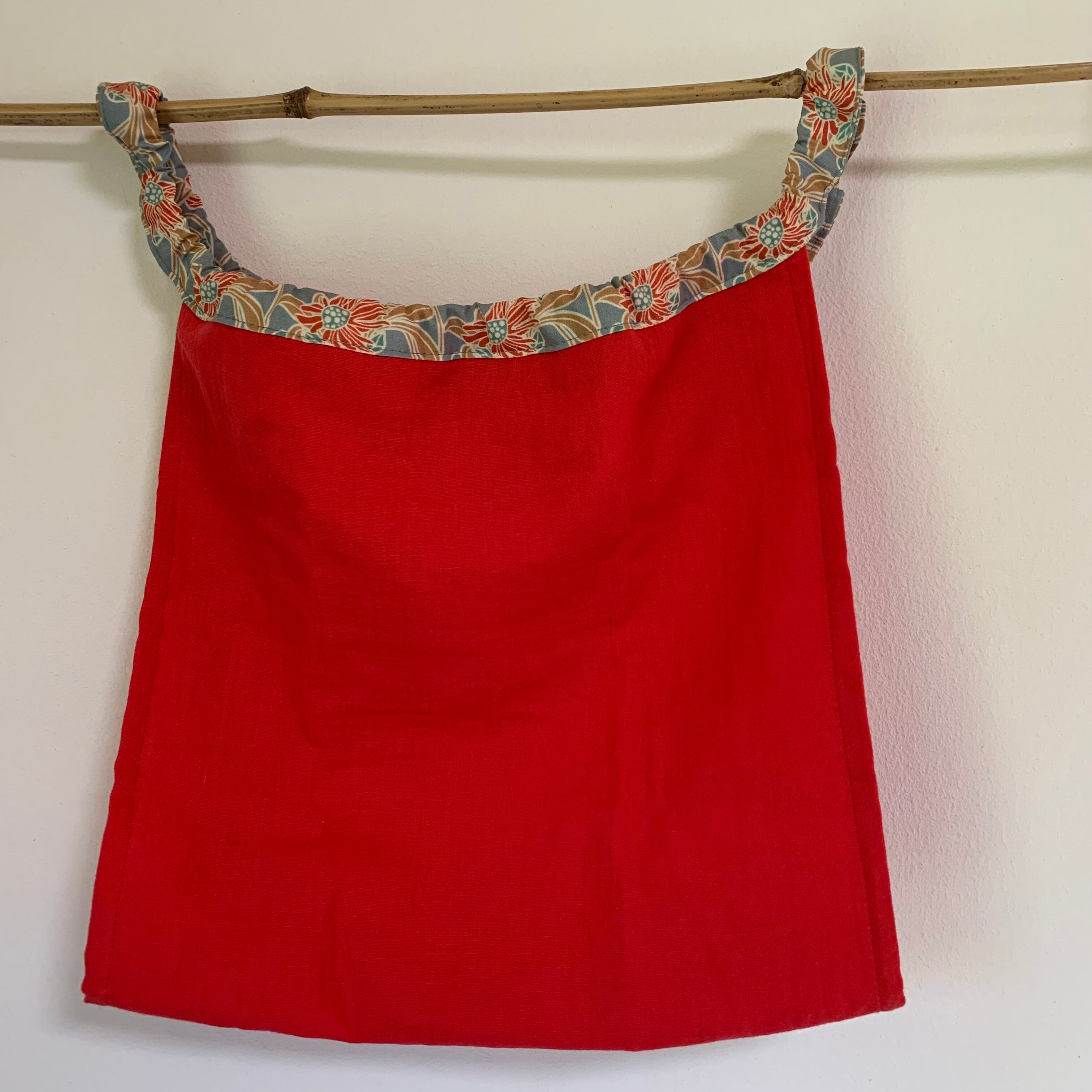 情熱の赤と落ち着いた花柄紐のコンビです。
