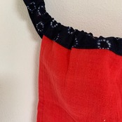 元気な赤のふんぱんに藍染め風の紐をあわせてみました。