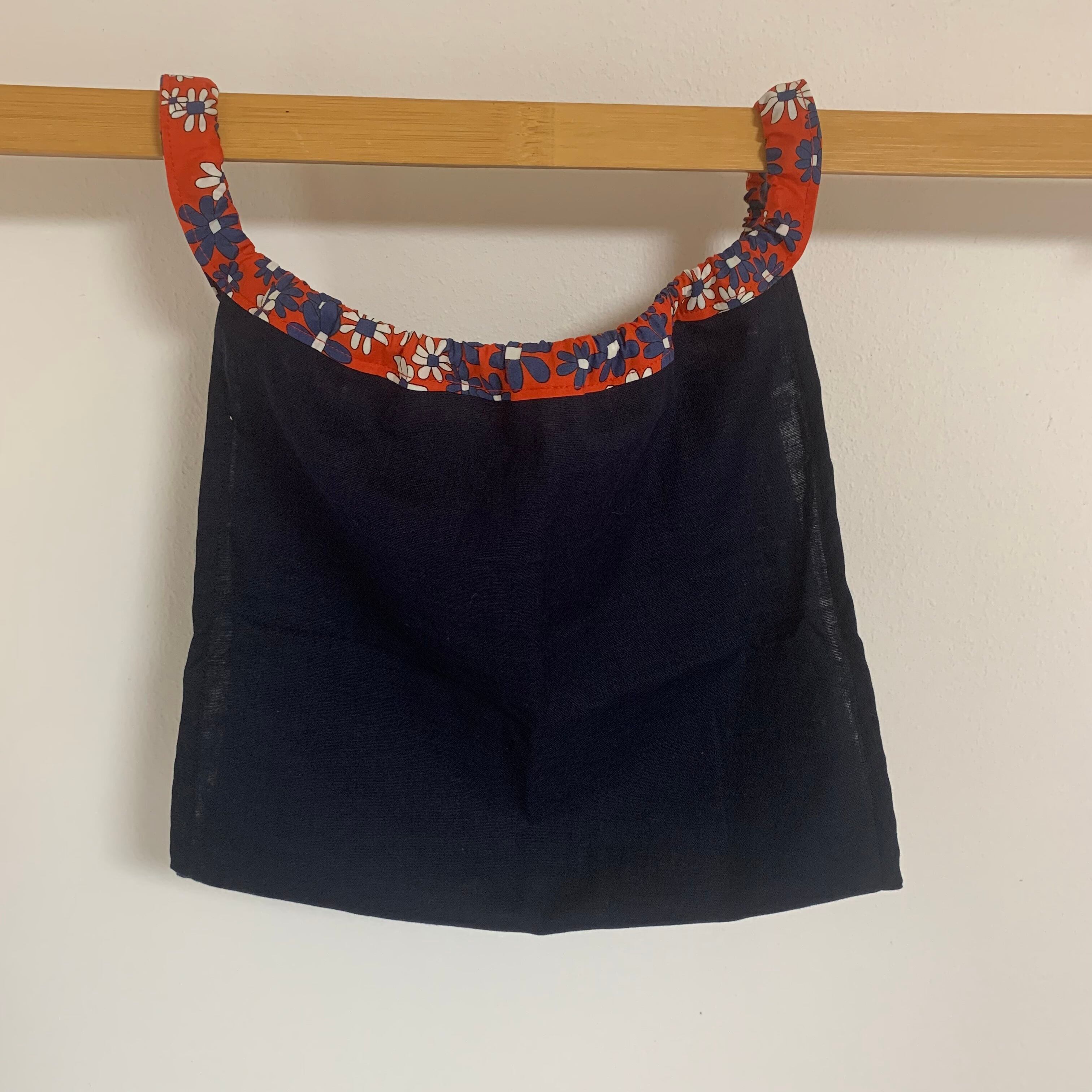 ネイビーブルーのみごろとしなやかな赤いレトロな花柄紐の組み合わせです。
