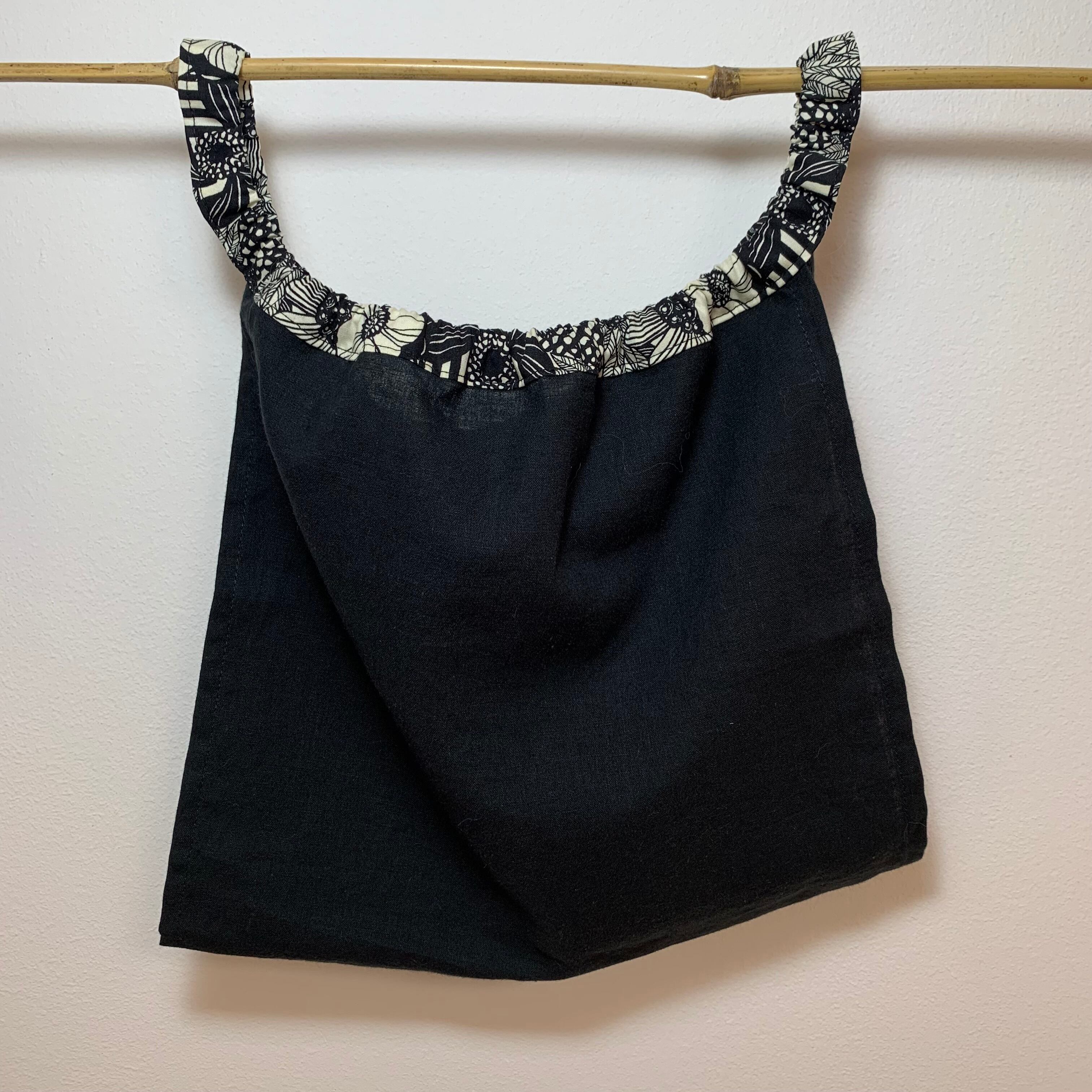 ふんぱん・綿麻・平織・大人M・ユニセックス・ブラックXフラワー(230715-03)