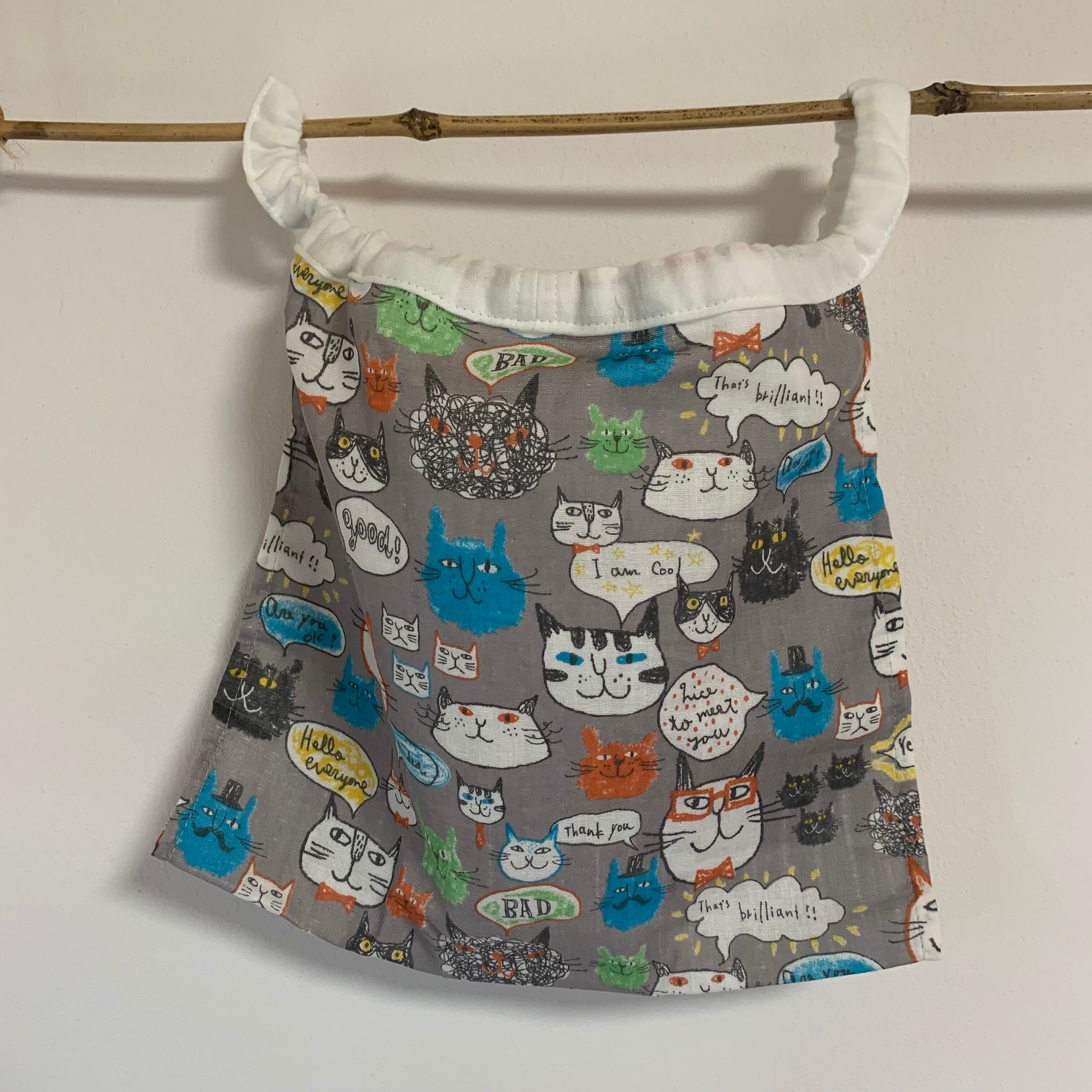 グレーニャンコ生地にホワイト紐の組み合わせです。