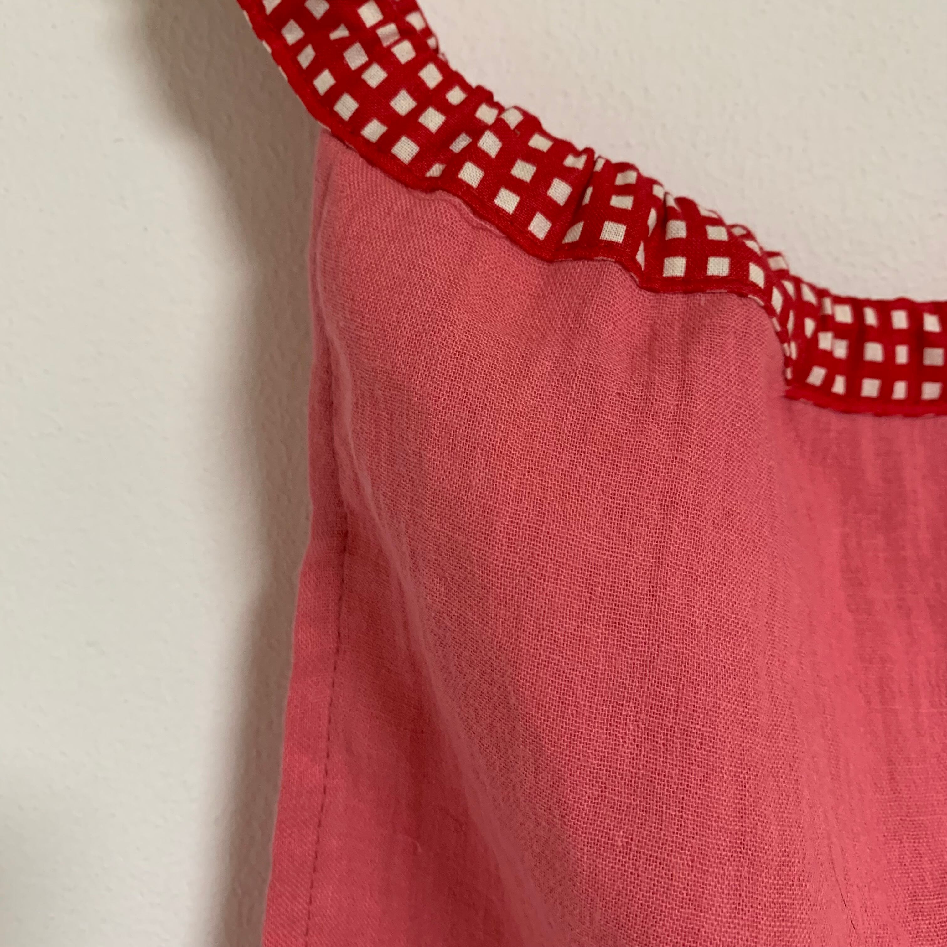 ピンクと赤のブロックチェックの可愛くて元気なふんぱんです。