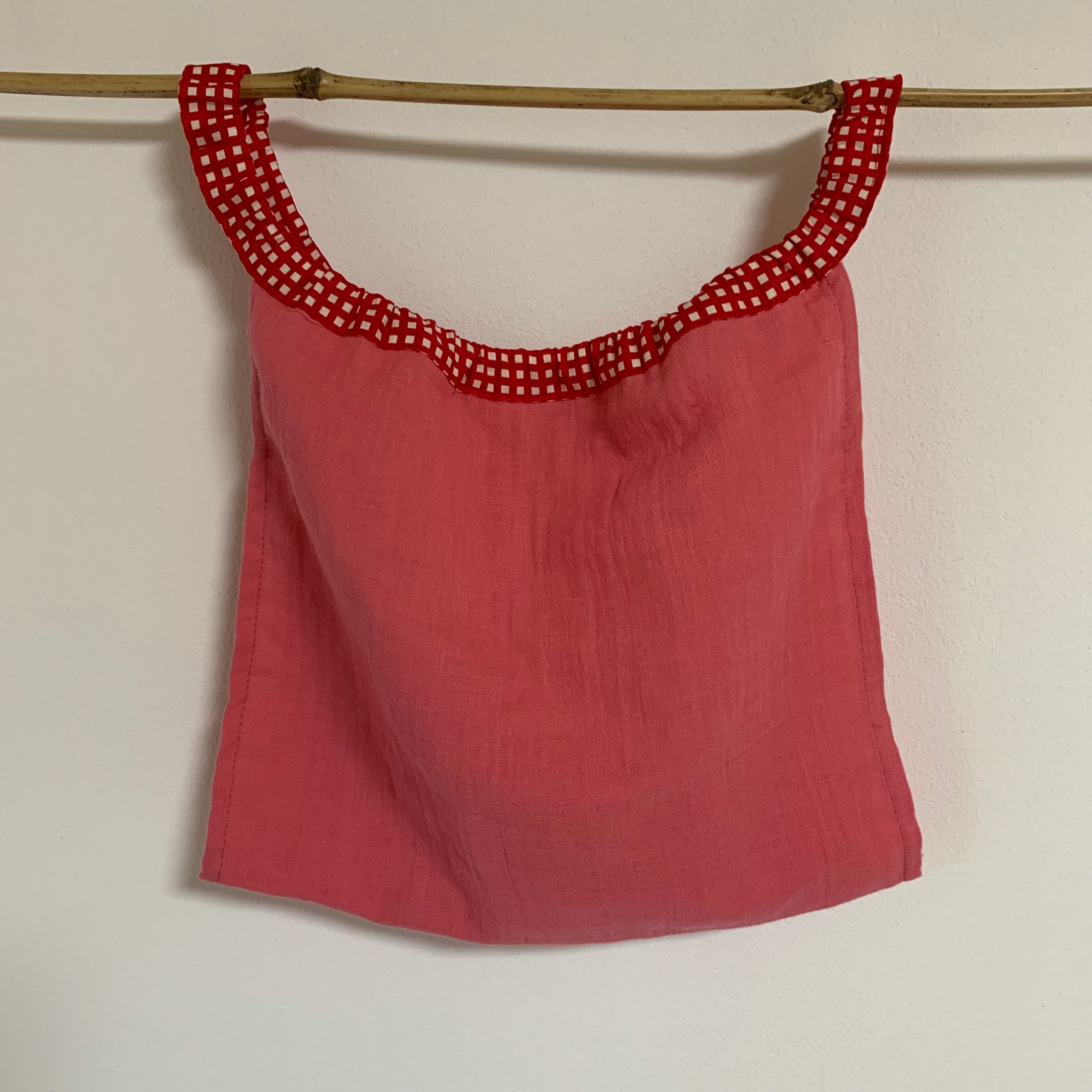 ふんぱん・ピンク&赤チェック・綿・Wガーゼ・大人M・ユニセックス(231218-06)